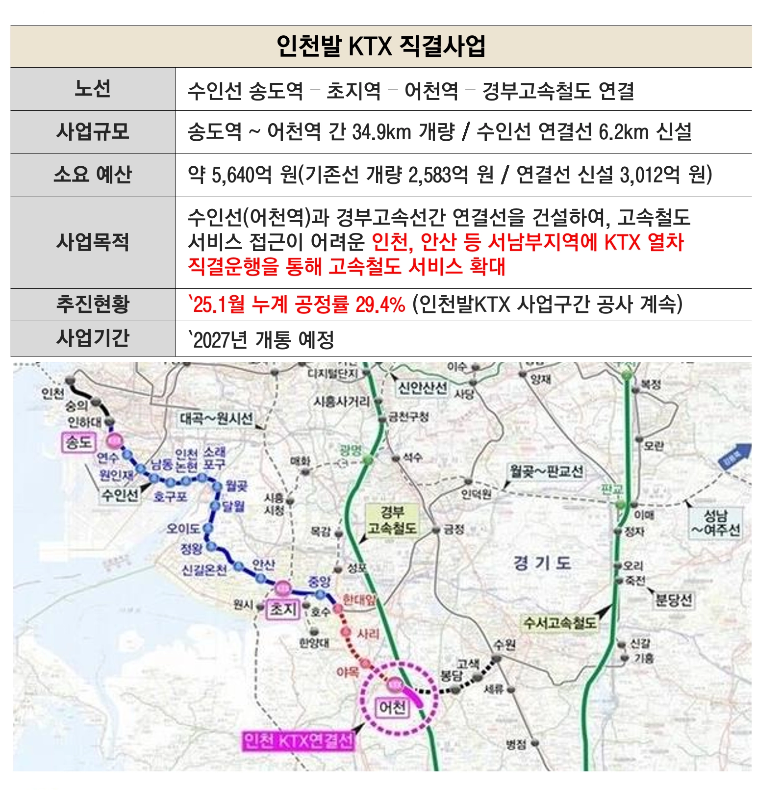 인천발 KTX `27년 개통 예정으로 광역교통망 개선