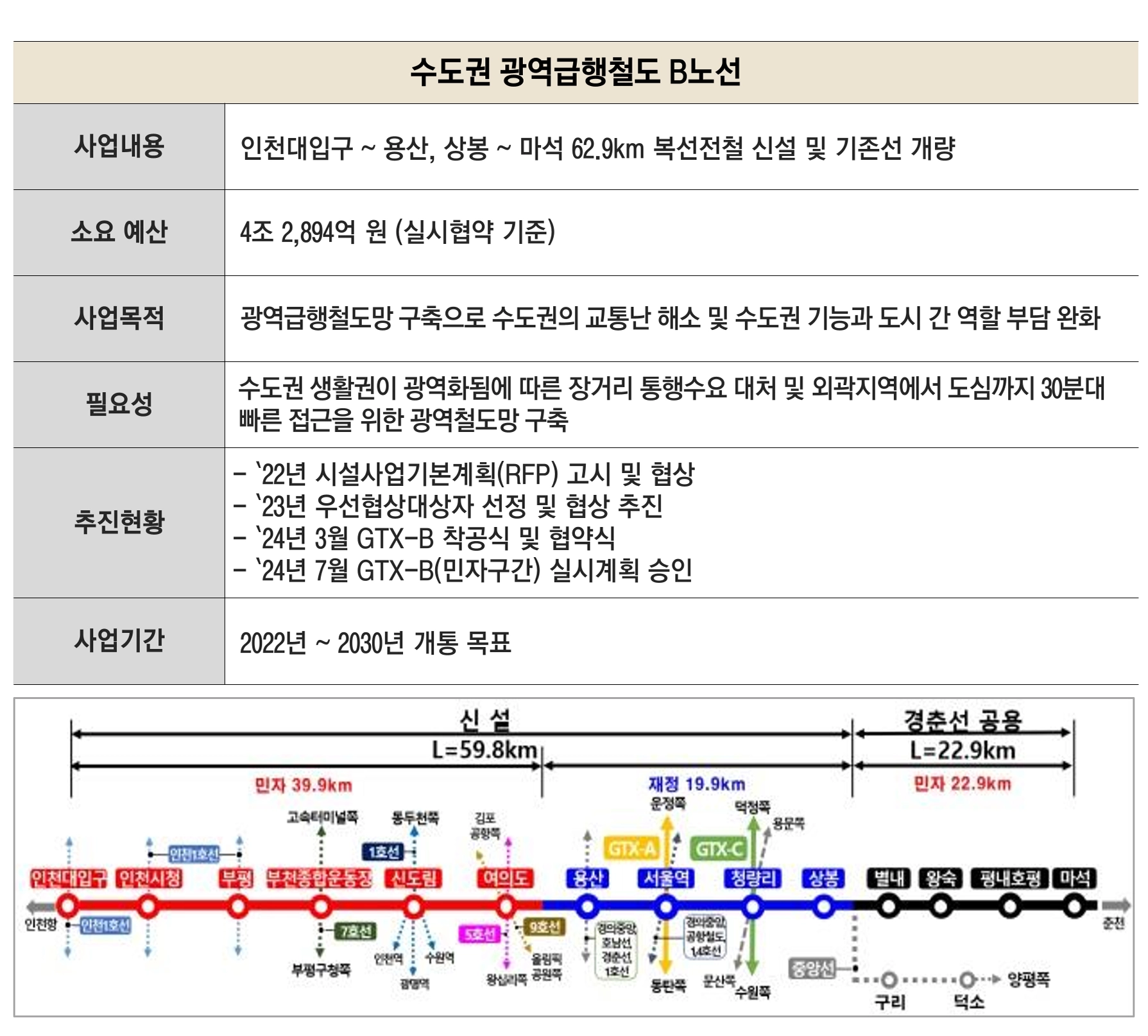 GTX-B 개통 시 기존 철도 및 도로 과밀화 해소 + 서울도심까지 30분대 이동 가능